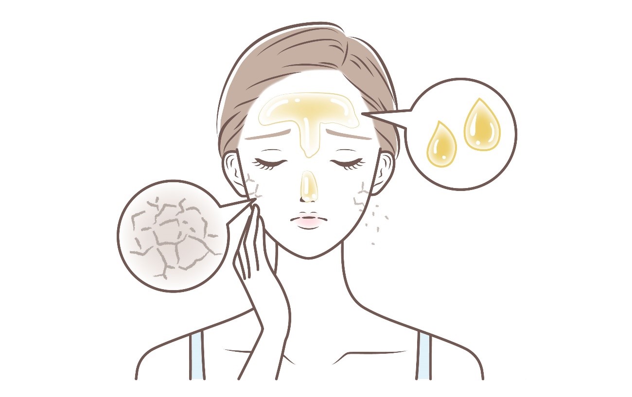 クリームなど油分が配合されているアイテムを使うときは、テクスチャーの軽いものを選び、ベタつきやすいTゾーンなどの皮脂分泌量が多い部分はひかえめにします。頬や目元・口元などの乾燥しやすい部位はたっぷりと使うなど、部位に合せて塗り分けることが重要です。