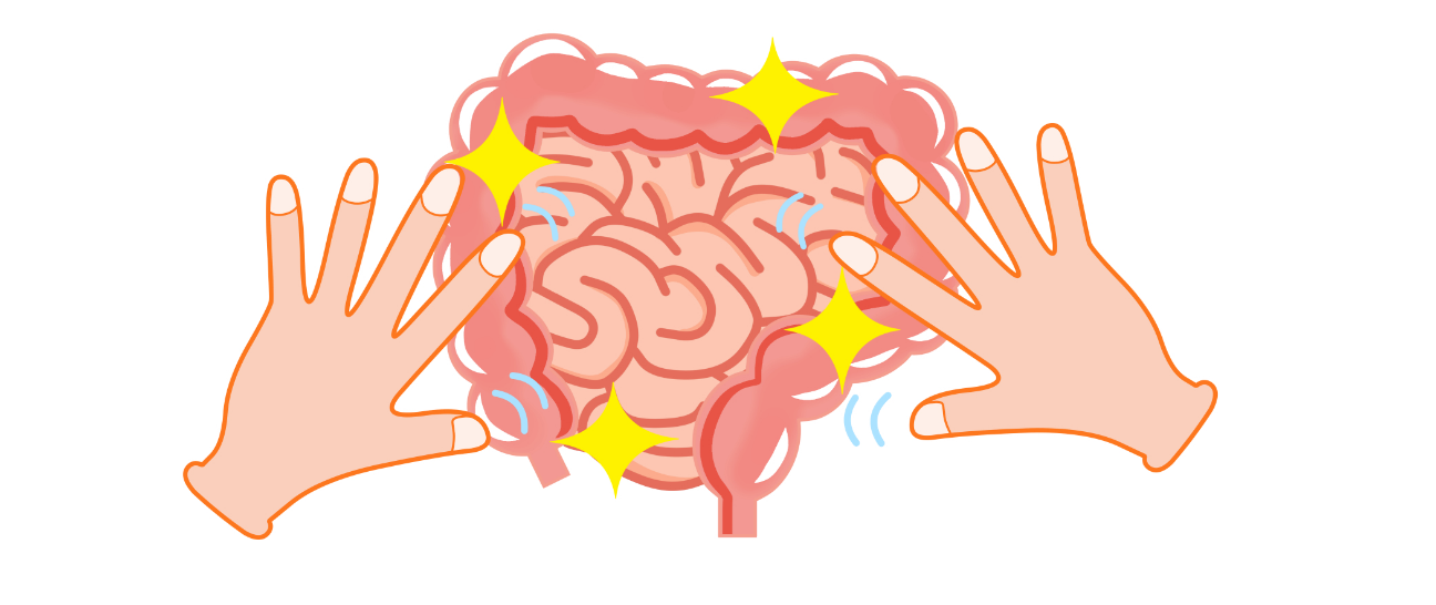 おヘソまわり、下腹をマッサージしましょう。硬くなった大腸周辺のコリをほぐすと、