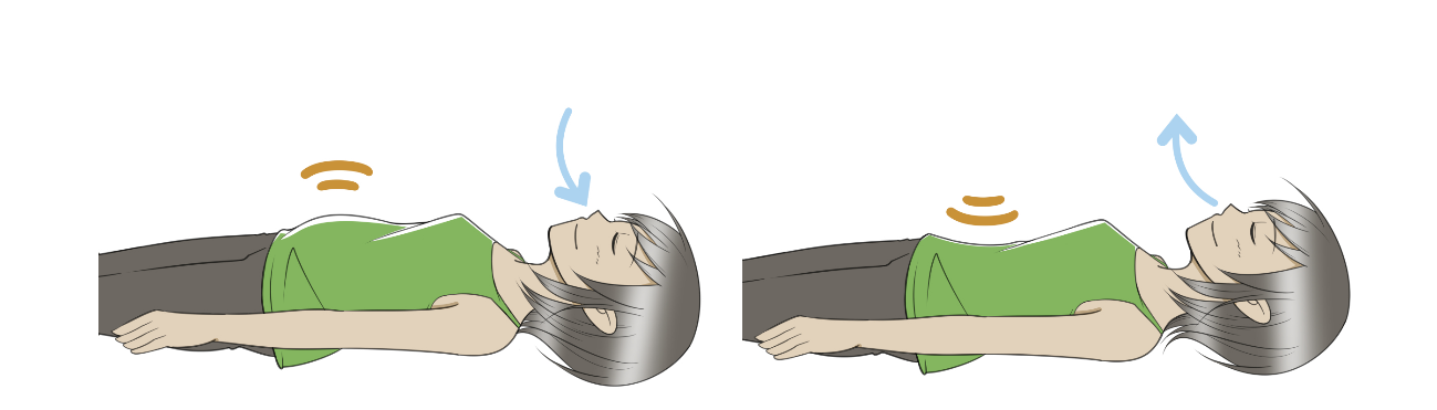 ①仰向けに寝て、両手は自然に広げ体を安定させます。
