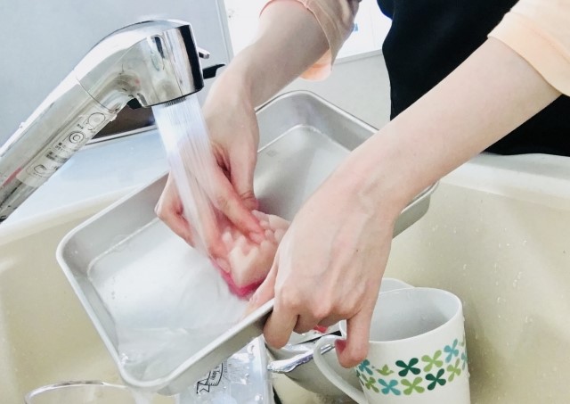 皿洗いなど、水仕事をよくされる方は手が荒れていることが多いと思います。それは、手を水で塗らすと、水が蒸発する際に皮膚の水分も一緒に蒸発してしまい、皮膚が乾燥するからです。(特にお湯は蒸発しやすいです。)皮膚が乾燥すると皮が剥けやすくなります。また、洗剤を使っていると、洗剤の成分によって皮脂が奪われ、乾燥しやすくなります。