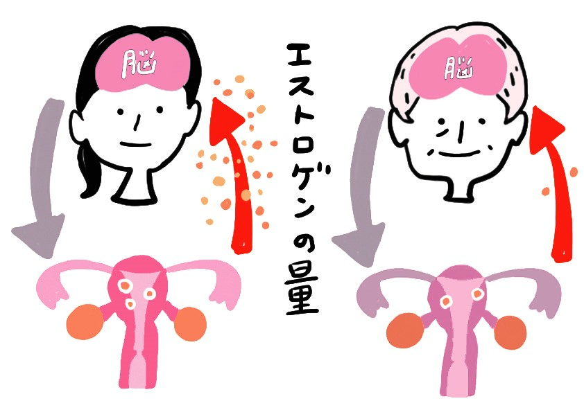 一般的に、女性は35歳を過ぎたころから卵巣の機能低下が始まり、卵巣内に残る卵子の数が急激に減少します。それに伴い、女性ホルモンの分泌も減っていきます。そのため脳が、卵巣に対し、女性ホルモンの分泌を命令しますが、機能が低下しているため分泌できません。そうすると、ホルモンバランスが乱れていき、自律神経の調整が難しくなってしまいます。