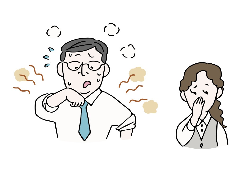 汗臭(ワキ臭)やミドル脂臭が減少し、50代半ば以降から本格的に加齢臭が発生します。