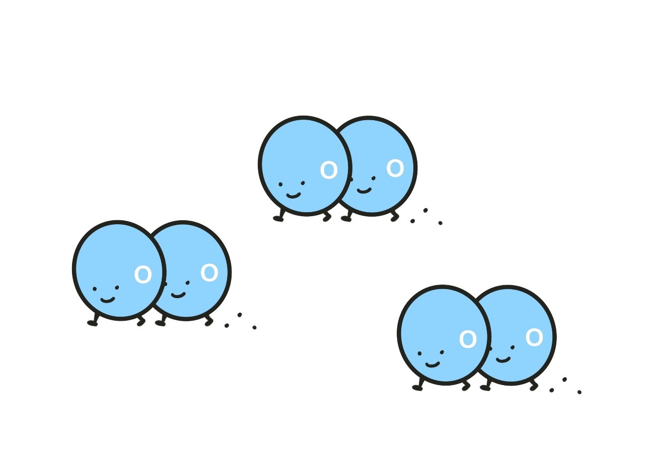 酸素は2分子(O2)の状態で安定していて、私たちのエネルギーとして使用され、最終的には水(H2O)に還元されます。