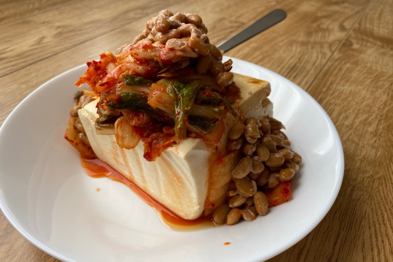また、納豆とキムチを混ぜて豆腐の上にのせ、ごま油をかけて食べるのがお勧めだそうです。