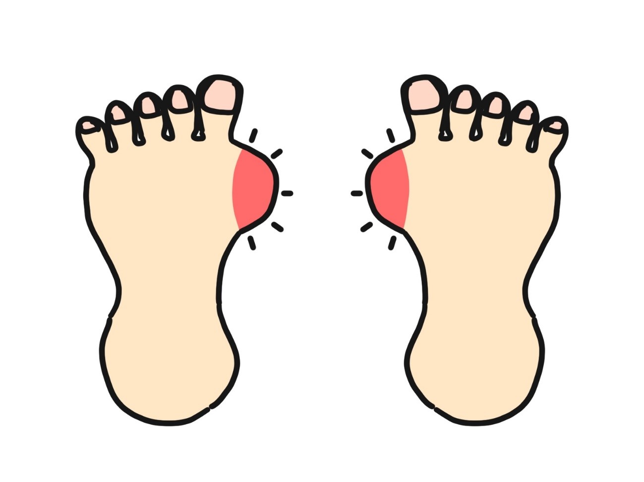 外反母趾になると強い痛みを感じやすくなります。セルフケアで痛みが治まらない場合は早めに病院を受診しましょう。
