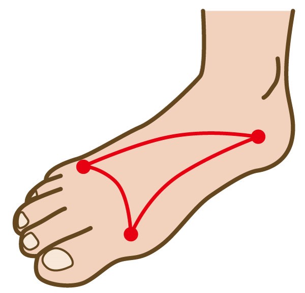 ①内側の縦のアーチ 親指の付け根とかかとを結ぶアーチ