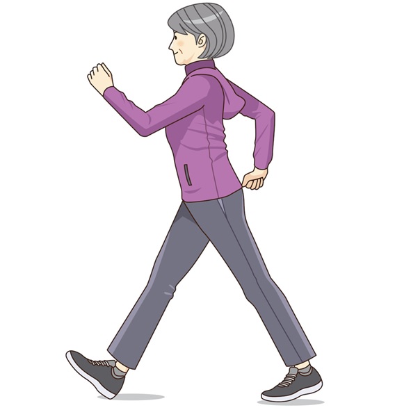 速歩きのスピードの目安は自分の最大体力の70%程度。しっかり腕を振り、大股で歩きましょう。