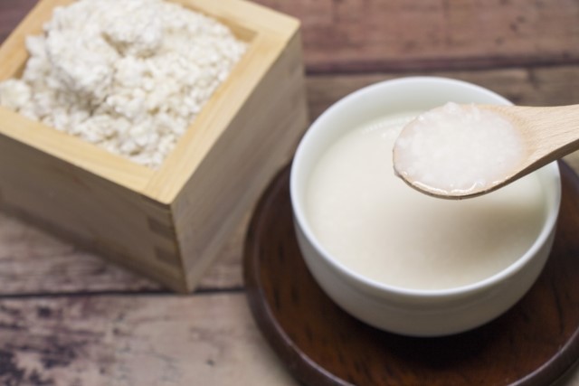 日本酒と同様に、麹の発酵作用を利用して米から作ります。日本酒と違い、甘酒は米のデンプンを麹菌によって糖分に変えているだけなので、飲みやすくカロリーも控えめだそうです。